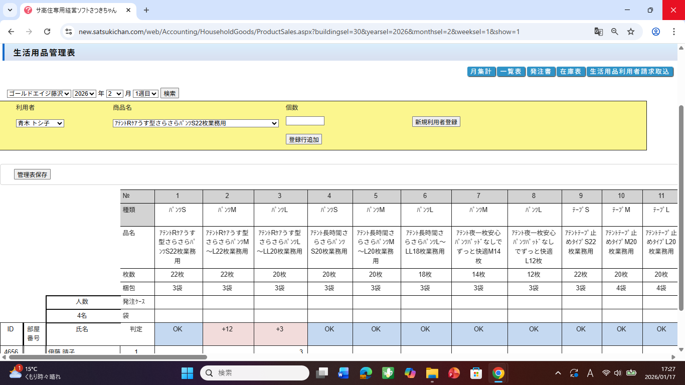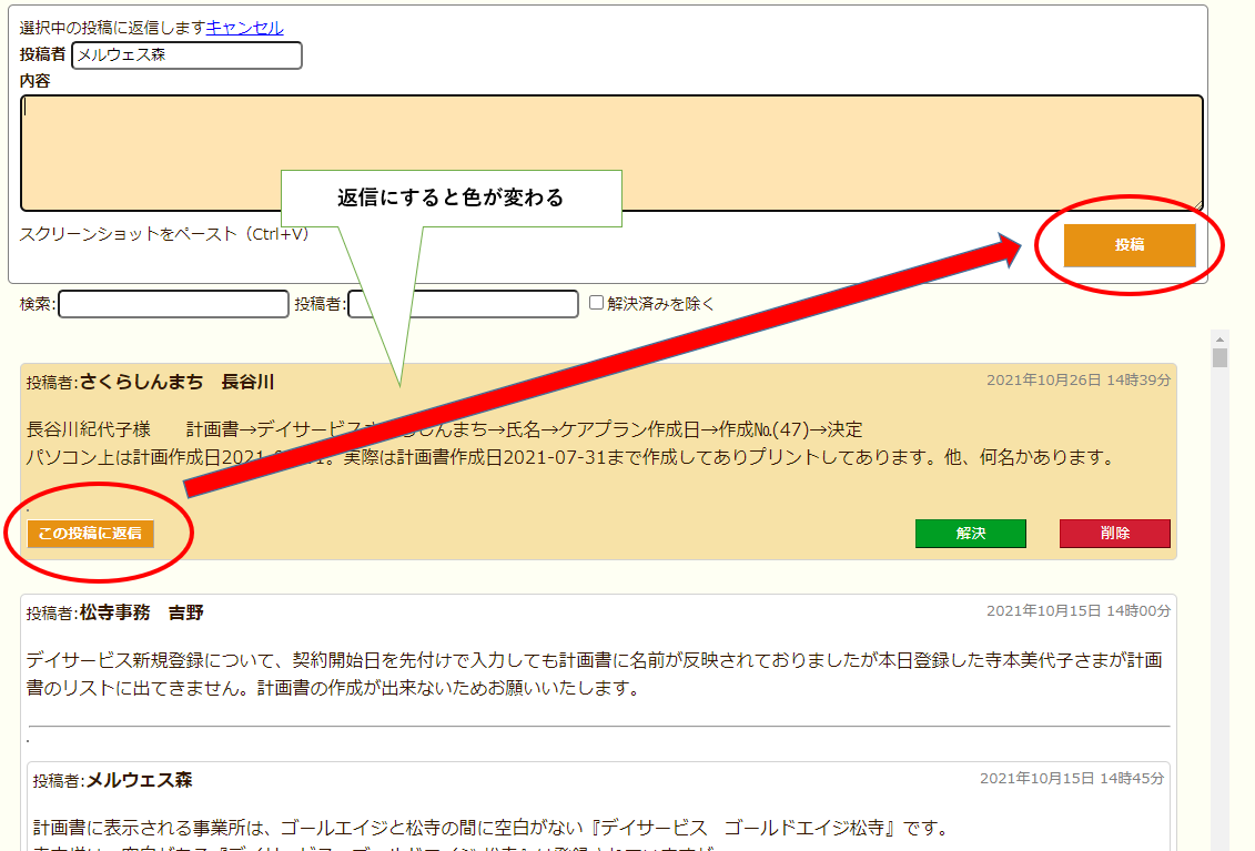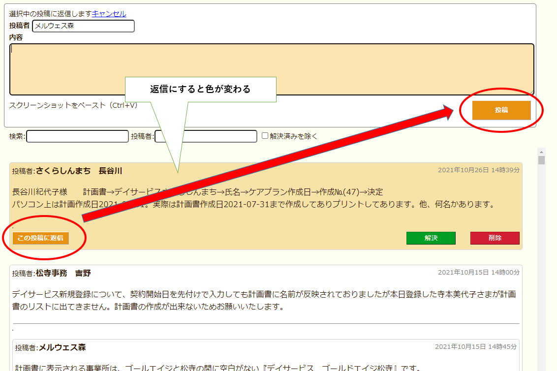 申し送り入力時、利用者様のお名前が入居順番となっていますが、以前のように部屋順の方が入力がしやすいです。