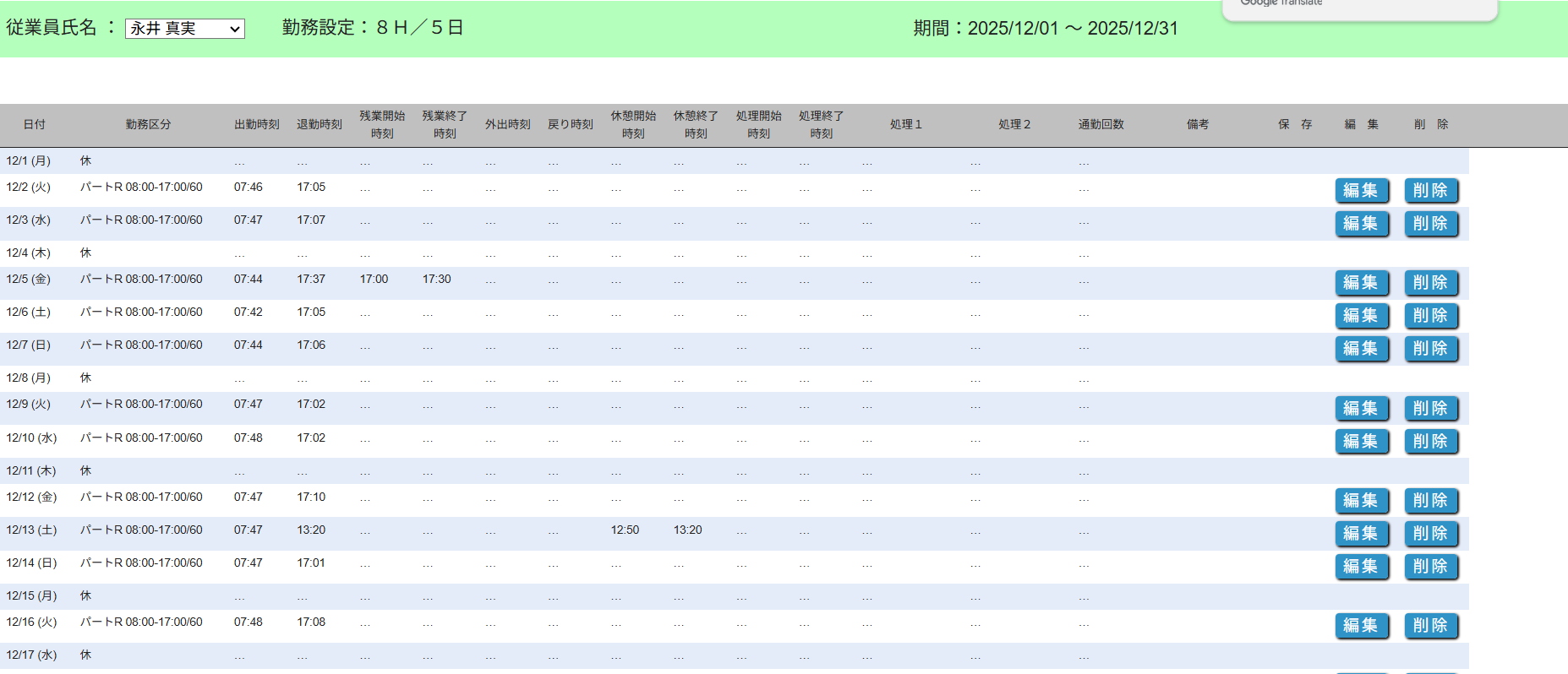 勤怠で「ゴールドエイジエクラ」を選択してもエクラ以外の人が出て来ます。