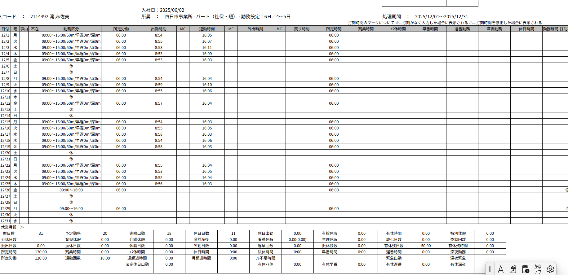 有休残日数を修正いたしました。どうぞよろしくお願いいたします。