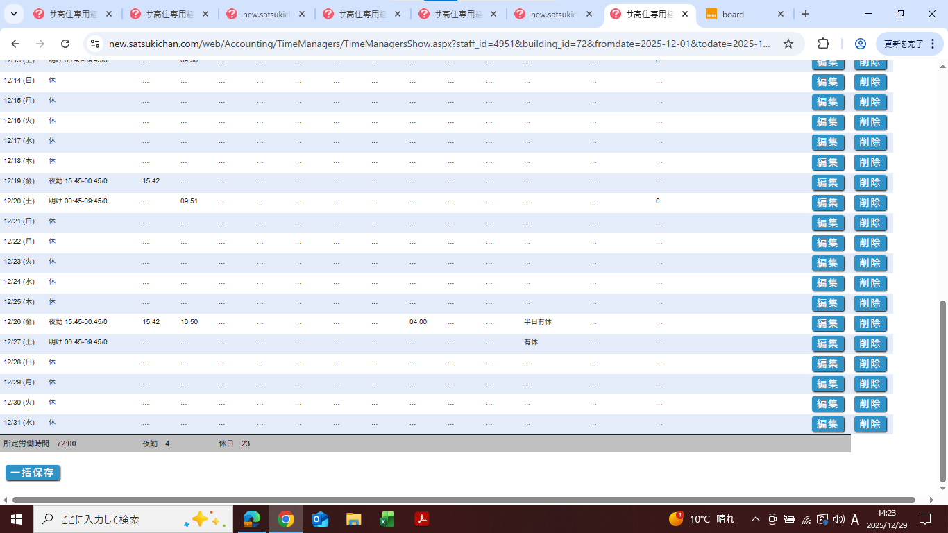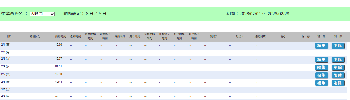 お問い合わせありがとうございます。3名の勤務区分が入力できないのを修正しました。どうぞよろしくお願いいたします。