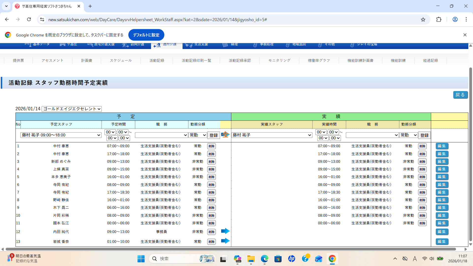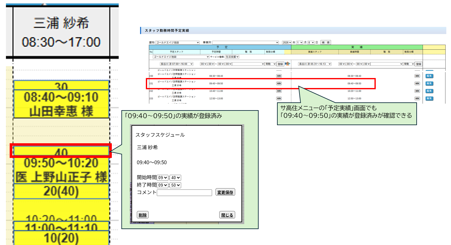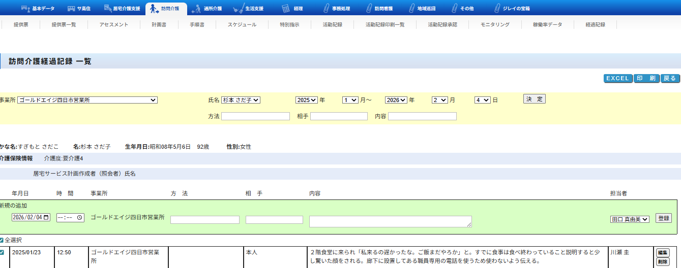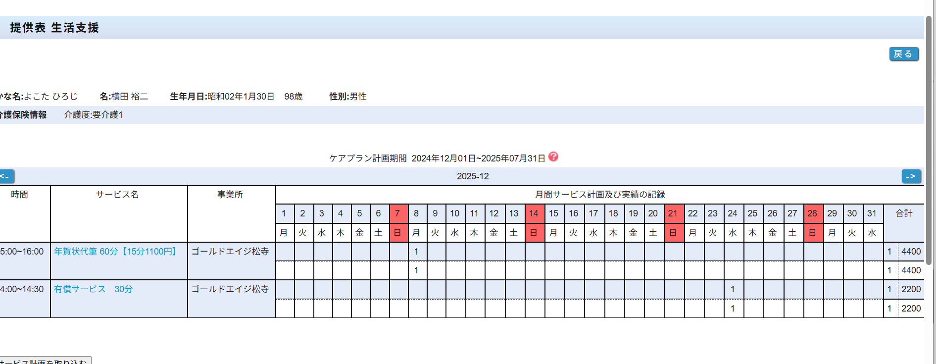 要介護の小久保様、堤様の予定はいれてますが、活動記録に反映されていません。