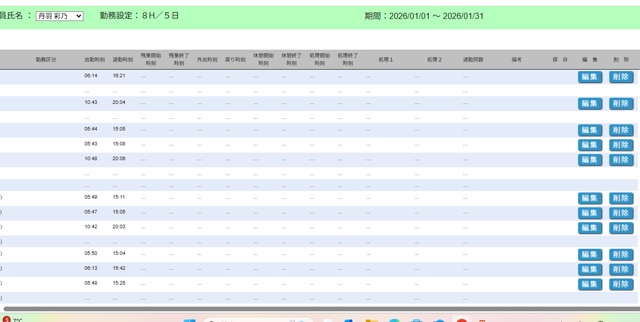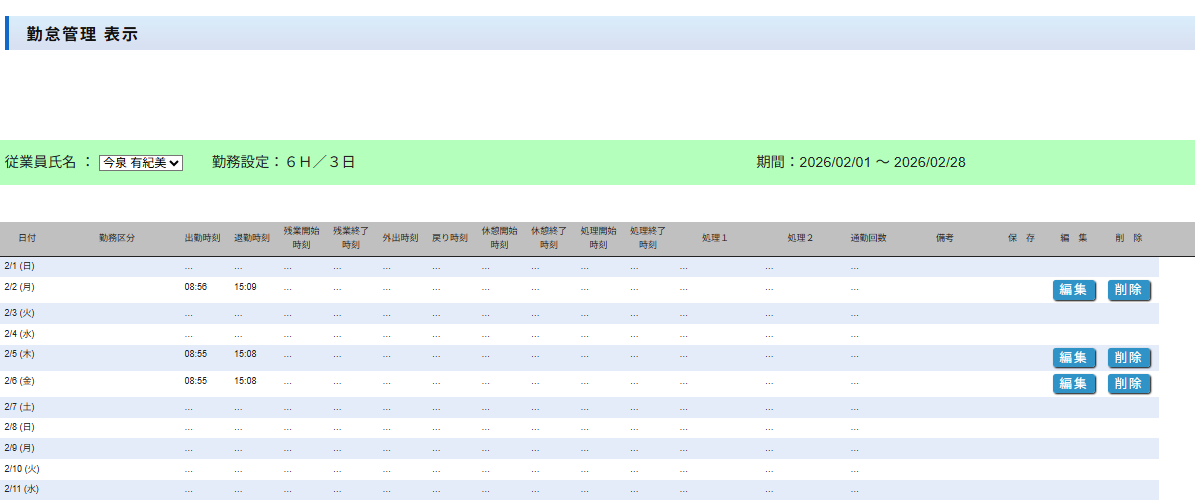 お問い合わせありがとうございます。後藤剣志様、葛山優真様、宮本司保様、宍戸五十鈴様の4名の勤務区分が入力できないのを修正いたしました。どうぞよろしくお願いいたします。