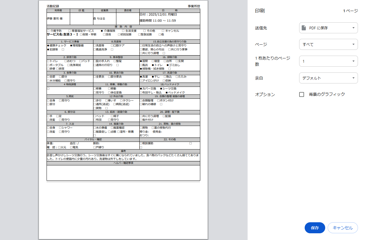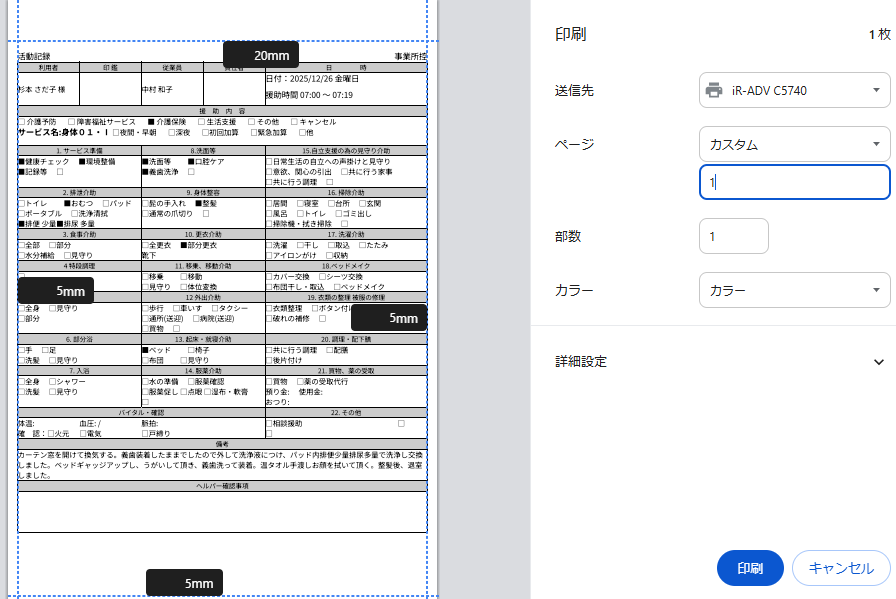 訪問介護の活動記録呼出ボタンではなく右側の呼出(ネット接続後に更新)を押して出てきた画面の利用者の部分をクリックして活動記録入力したらいいのでしょうか?体温を入力する欄がありません印刷はどのようにしたらいいでしょうか?